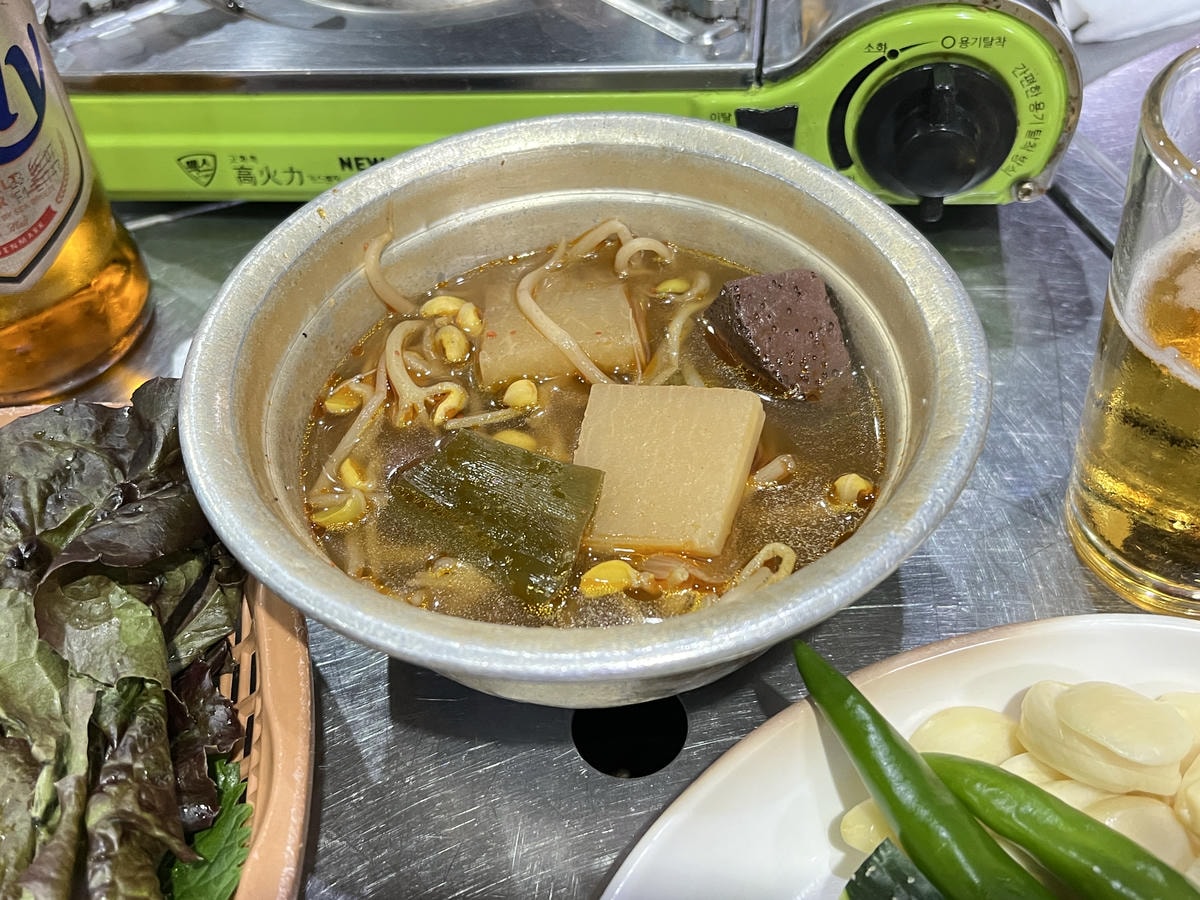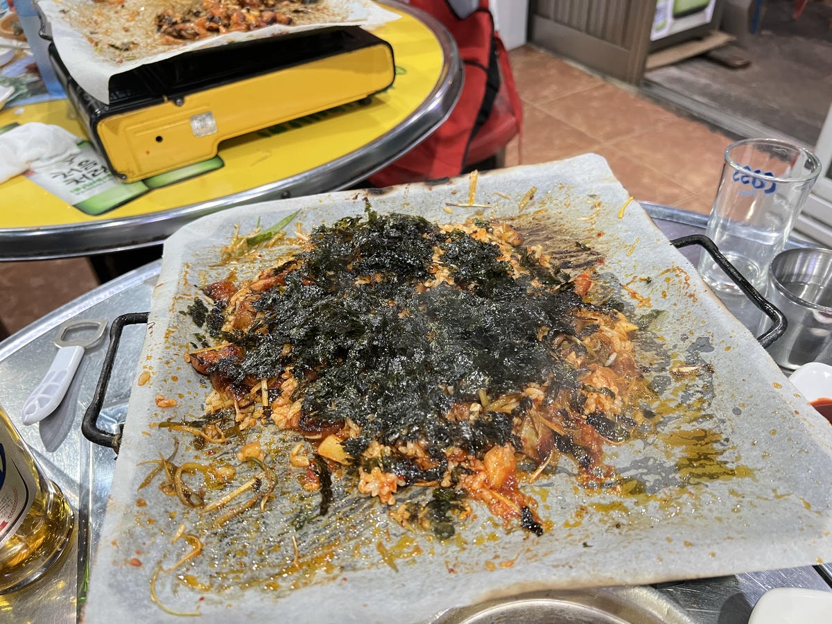 這次是本來預計想吃的店剛好公休,經過這間店被香味吸引,店裡滿滿的人,全是韓國人,就是這種全都是當地人的店感覺肯定不會踩雷,我們三個人也都沒吃過烤腸,所以決定來嚐個鮮,沒想到三人一致認同,這是我們本次釜山行被評為第一名的店,而且我們都認同,是下次如果再來釜山,還會再想來吃一次的店。